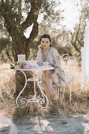 Cuando la diseñadora Ángeles Serrano contactó con nuestra agencia, tenía un nuevo reto en mente: lanzar su primera colección cápsula de batas para ocasiones especiales, fieles a su sello de feminidad y romanticismo. Nada más ver sus creaciones, mi imaginación voló directamente a los majestuosos palacios de Los Bridgerton. La opulencia sutil, los detalles cuidados y la esencia de una época dorada estaban presentes en cada pieza. Pero en lugar de recrear un escenario palaciego, decidimos trasladar esa estética a un entorno natural, dándole un giro más íntimo, bucólico y etéreo.