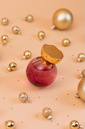 La sesión se realizó en estudio, con luz artificial controlada, lo que permitió modelar reflejos y transparencias con precisión, destacando las texturas de los frascos y el juego de materiales. Cada encuadre fue pensado para transmitir la sensación de regalo, deseo y cuidado, alineándose con la emoción visual que acompaña a la temporada navideña.